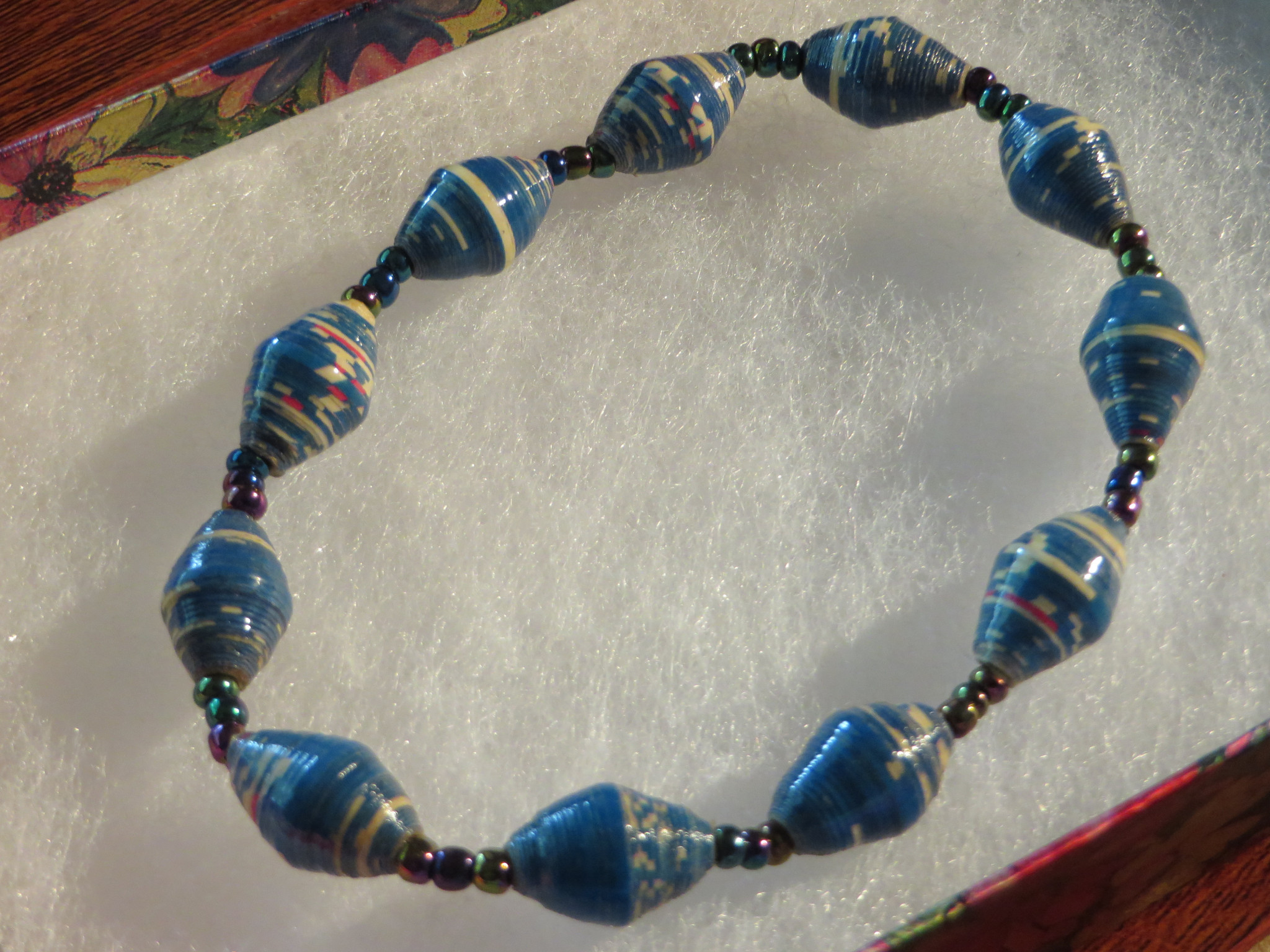 Braided leather with beaded design – Self-tie- 7.5in long NOT stretchable -”Inani bracelet - J025” $14