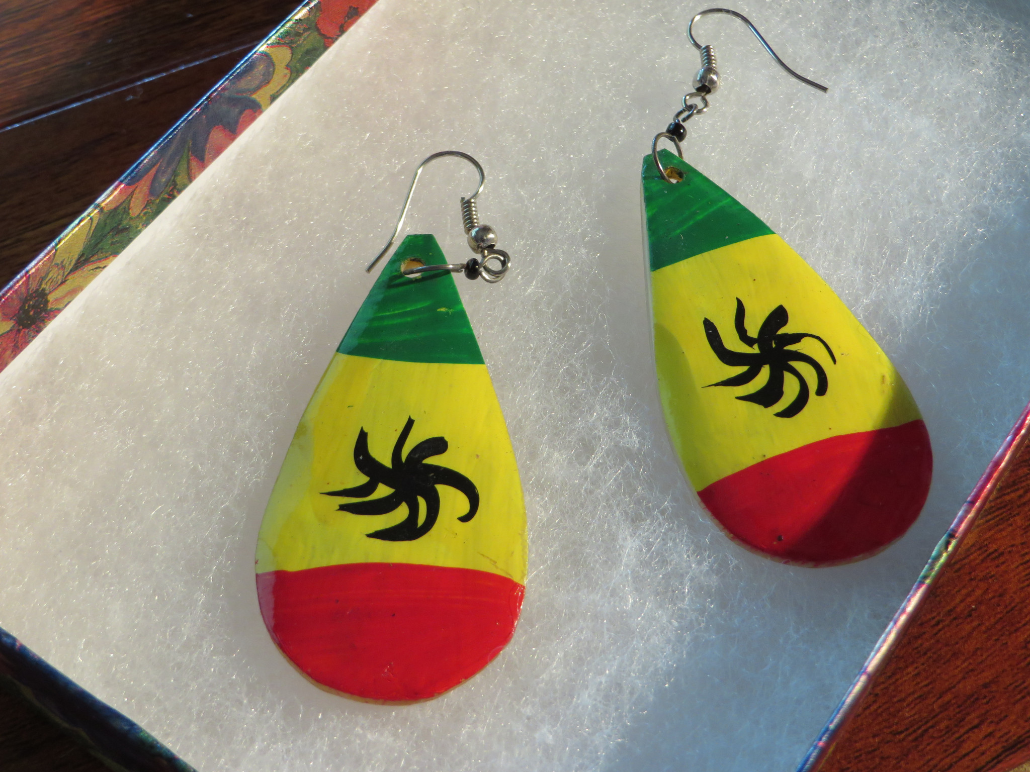 Named after the Ammannia Coccinea used in many dyes – Orange and yellow convexes- “Ikobookobo earrings - J046” $17