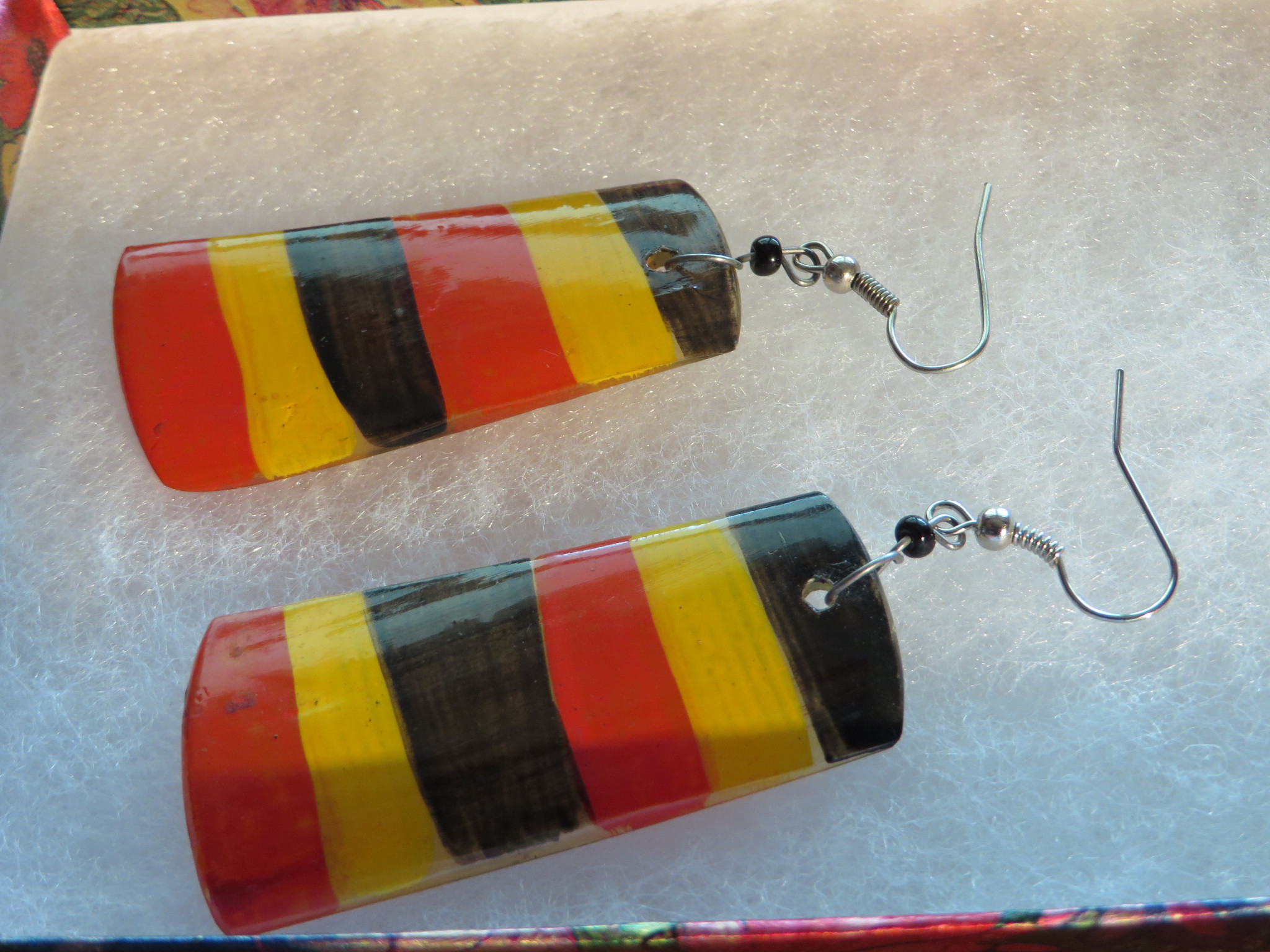 Named after the Ammannia Coccinea used in many dyes – Orange and yellow convexes- “Ikobookobo earrings - J046” $17